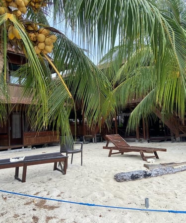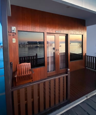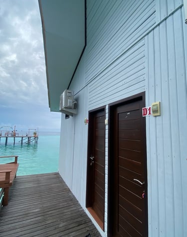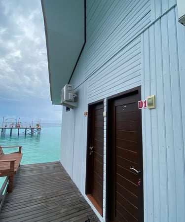 Penginapan estetik dengan akses langsung ke laut dari depan kamar.